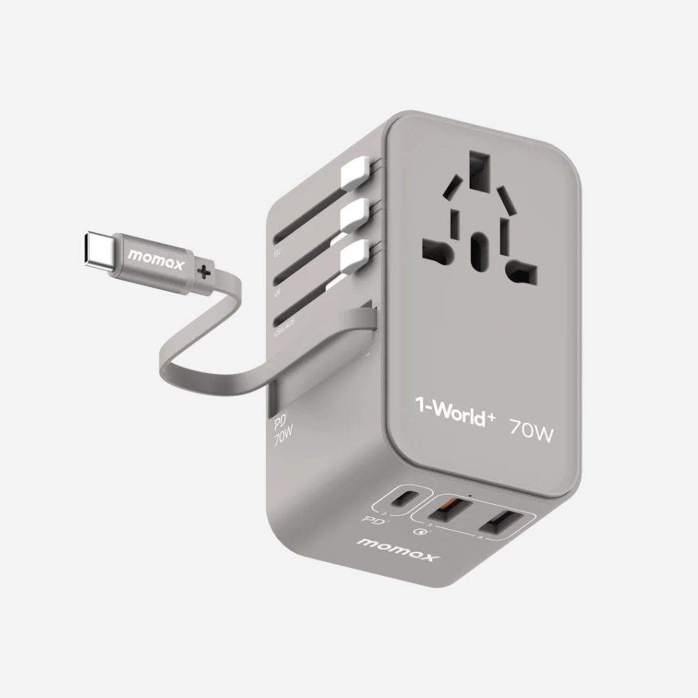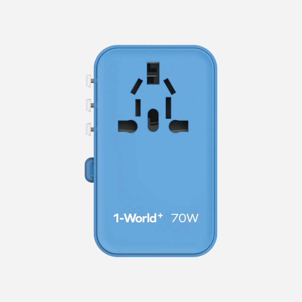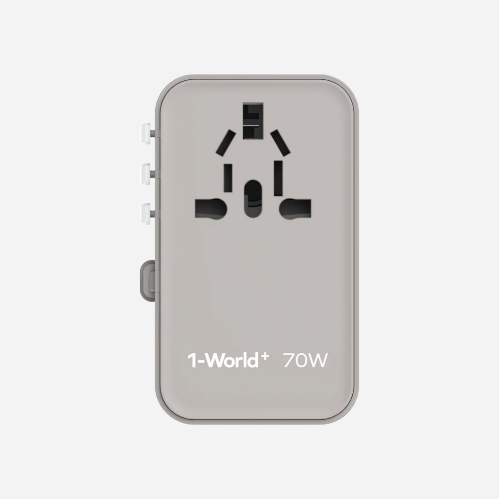 1-World 3-Port GaN + AC Travel Adapter 70W