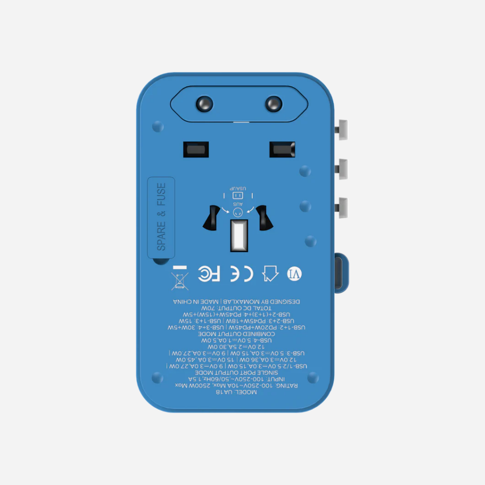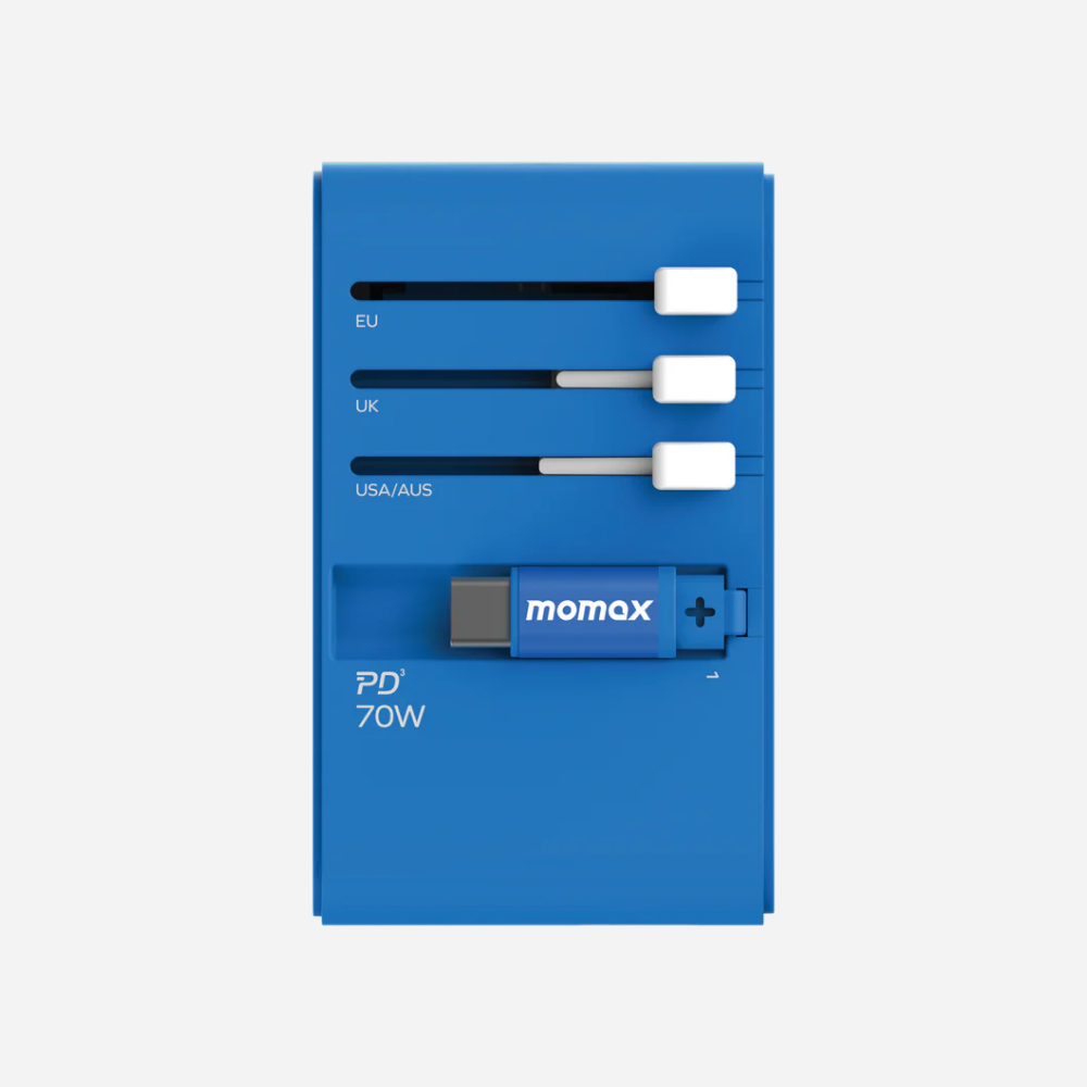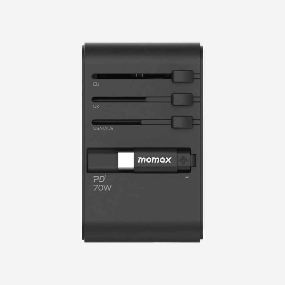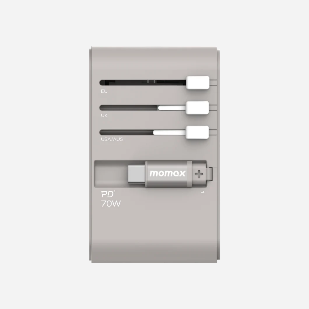 1-World 3-Port GaN + AC Travel Adapter 70W
